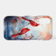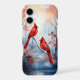 A beautiful phone case for bird lovers featuring a glorious autumn woodland forest scene with red cardinal songbirds for nature lovers.