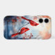 Red Cardinal Birds in a Misty Forest iPhone Case