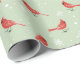 Red Cardinal Birds & White Snowflakes On Green Wrapping Paper