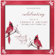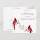 A hand painted watercolor red cardinal on a loving celebration of life invitation