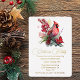Pretty Christmas party invitation done in white, with beautiful artwork of a red cardinal and flowers and gold foil custom text. Personalize all the text fields for your holiday party.