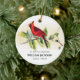 Elegant watercolor red cardinal christmas ornament, is the perfect way to pay tribute to your lost loved ones this christmas. Featuring the symbolic red cardinal bird and personalized with their name and important dates.