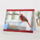 A beautiful red Cardinal sitting atop a crystal bowl, filled with seeds, bring wishes for a "Happy Birthday". The verse inside brings wishes for happiness and blessings.