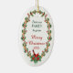 Here's a pretty Christmas ornament that makes a nice keepsake family gift. The front features an oval wreath with images of green leaves, holly berries, Christmas cookies, candy, and a bright red cardinal. At the center are custom text fields in matching green and red. The back of the ornament has the same Holiday wreath and more custom text fields.
