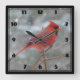 Magical winter scene with a red cardinal perched on a branch while snow falls all around.