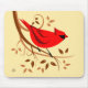 Red cardinal perched on branch swirls with leaves in autumn colors and customizable background