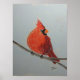 This pastel painting by Jayne Wilson features a Northern, Red Cardinal sitting on branch against a pale blue background.