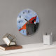 A clock with a photograph of a pretty red cardinal standing on a wooden stump.