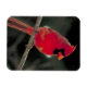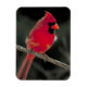 A crisp clearly detailed beautiful nature photograph. A bright red northern cardinal perched on a tree branch. You can see tufts of downy feathers gently blowing in the wind. Fluffy and cute!