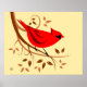 Male Northern red cardinal on swirl style branches with leaves art with an autumn color scheme