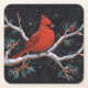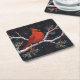 Red Cardinal with Winter Red Berries Square Paper Coaster