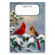 A pair of northern red cardinals perch on a holly branch covered with red berries and snow.