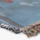 A quality printed throw has its advantages. This is a much finer weave throw than its loopier cousins, and though lighter, it is worth the investment for custom room accessorizing. The back is much prettier than the typical brown, and the fringe on the long sides very vivid, the selvage nicely done. Before photographing, I washed the throw in cold water, delicate, with a thicker woven throw the same size. On tumble dry low, this throw was dry in half the time as the other. This is a very practical quality if you use throws for furniture covers or to wrap up in frequently. The sleekness of the fabric makes it a great layer for accenting or protecting without the feeling of sitting on too much stuff. Perfect for napping or when you feel a light chill coming on. The color printing is beautiful and on this fabric, matched the design and color of my Photoshop image. This is an advantage for blending room fabrics and colors. The fringe on the short sides prints the colors from the design image and therefore varies from the side fringe. I streaked a white fractal line through the plaid pattern to give the illusion of weaving. This printed as crisp as an illusory thread, and put some white in the short side fringe, showing another advantage of print vs loomed- for artistic purposes, line lines, detail, and color integrity can be planned and preserved. My loomed throws have color limitations and more of a needlepoint texture. Print throws reproduce an exact image. The throw felt a little stiff straight out of the package, but this went away in the first delicate wash. Of course I searched the wash water for ink or bleeding and there was none.