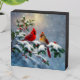 Red Cardinals and Holly in Snow Wooden Box Sign