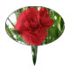 This awesome cake decoration features a detailed photograph of a stunning red carnation flower. The photograph was taken using macro photography to show the beauty of this bright red bloom surrounded by green foliage.