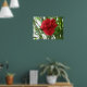This beautiful print features a detailed photograph of a stunning red carnation flower. The photograph was taken using macro photography to show the beauty of this bright red bloom surrounded by green foliage.