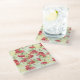 Red Carnations on green with butterflies Glass Coaster