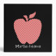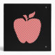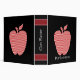 Stylish teacher's custom class planner binder, with a red and white checkered apple silhouette against a black background. Graphics of red and white ribbons decorate the top and bottom of the spine. Fun white text, on the front and spine is fully customizable. Personalize the text to say what you want. Great as teacher's planners or grade books. Makes a great gift for your favorite teacher. Purchase the inserts you need separately from office supply stores.