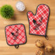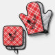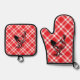Red Checkered Black Chicken design Oven Mitt & Pot Holder Set