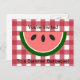This fun design features a red checkered tablecloth and a slice of watermelon. To change the font style, color or size, click the Customize It button.