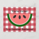 This fun design features a red checkered tablecloth and a slice of watermelon. To change the font style, color or size, click the Customize It button.