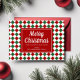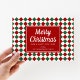 Red Checks Pattern Christmas Script Photo Holiday Card