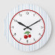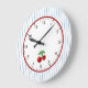 Red Cherries on Blue Stripes Graphic Pattern Large Clock