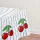 Red Cherries on Blue Stripes Graphic Pattern Tablecloth