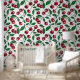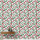 Red cherries on white wallpaper