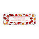Personalized red cherries return address label design with your custom return address printed in red over an illustrated pattern of different types of cherries. These are the perfect return address labels for anyone who loves cherries and cherry stationery.