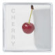Red cherry hangs from the brim of the gray porcelain cup against white background. The summertime theme. Silver Finish Lapel Pin for anyone. Customizable. You can change or delete the template text CHERRY.