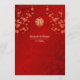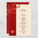 Red cherry blossoms and a gold double happiness symbol on a shimmering red background. With custom bride and groom names, the wedding date and a custom menu text.