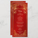 Red cherry blossoms and a gold double happiness symbol on a shimmering red background. With custom bride and groom names, the wedding date and a custom menu text.