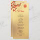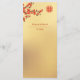 Red cherry blossoms and a red double happiness symbol on a gold background. With custom bride and groom names, the wedding date and a custom menu text in a classic handwritten script. On the backside are the initials to change.