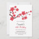 Red Cherry Blossom Sakura Floral 40th Birthday Invitation