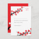 Red Cherry Blossom Themed Wedding RSVP Card