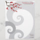 Red Cherry Blossoms Sakura Flowers & Grey Spirals Letterhead