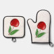 The design printed well on the oven mitt and pot holder, keeping its bold red color. It made a great gift.