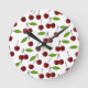 Red Cherry, Pattern Of Cherries, Leaves, Fruit Round Clock