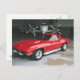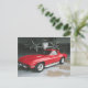 Postcard featuring a red Chevrolet Corvette in an airplane hangar.