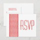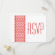 Chic and modern Chevron Border Wedding Response Postcard featuring a simple chevron pattern border in red and white. This stylish design will set the tone for an elegant wedding. Easy to customize, simply add your wedding details in the text fields provided. Click "Customize It" to find more personalization options.