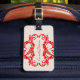 Elegant and sophisticated Chic Damask Luggage Tag featuring a soft beige background and a stylish damask flourish embellishment in dark red. This modern design is easy to customize with your own text. Click "Customize It" to find more personalization options.