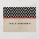 Elegant and modern Chic Quatrefoil Wedding Table Number Postcard featuring a trendy moroccan pattern background, a vintage paper look background and a pair of thin red stripes. This stylish table card is easy to customize, simply add the appropriate table number(s). Click "Customize It" to find more personalization options.