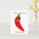 Greeting card red chili pepper birthday card. Customise this birthday card with any text then have it printed and sent to you or instantly download it to your mobile device. Should you require any help with customising then contact us through the link on this page. Chili pepper design birthday card that you can have printed or instantly downloaded