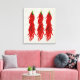 A graphic illustration of red chili peppers on a wrapped canvas print. ©2015charmainepaulson