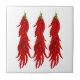 A graphic illustration of red chili peppers by artist/designer Charmaine Paulson on a kitchen tile. ©charmainepaulson