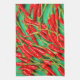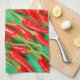 Red chili peppers on green background tea towel