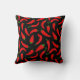 Red Chilli Pepper Pattern on Black Fun Throw Pillow