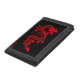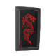 Handsome black wallet, with graphics of a red Chinese style dragon against a black background, on the front flap. Personalize the red text to suit your needs. Makes a great gift for guys.