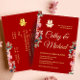 Red Chinese wedding double happiness floral Foil Invitation